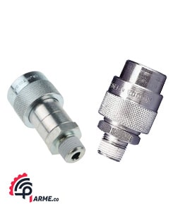 اندازه پورت و نوع رزوه: کوپلینگها دارای اندازههای پورت مختلفی هستند تا اندازه شیلنگها و نرخهای جریان مختلف را در خود جای دهند. رایج ترین نوع رزوه مورد استفاده NPT یا BSPP است. بسته به برنامه، اندازههایی از 1/4 اینچ تا 1/2 اینچ یا بزرگتر پیدا خواهید کرد. شناسایی مناسب نوع و اندازه رزوه برای اتصالات بدون نشتی حیاتی است.